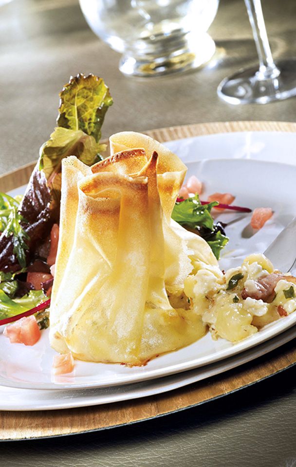 Servez les aumônières dès la sortie du four avec un peu de salade.
