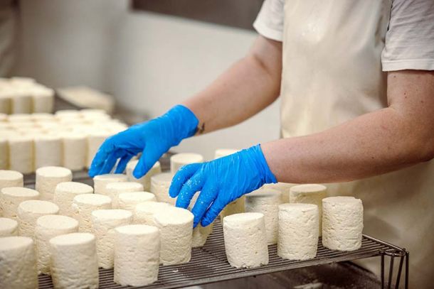 David Petiot et son équipe moulent les fromages à la louche et pratiquent le retournement manuel « à l’ancienne ».